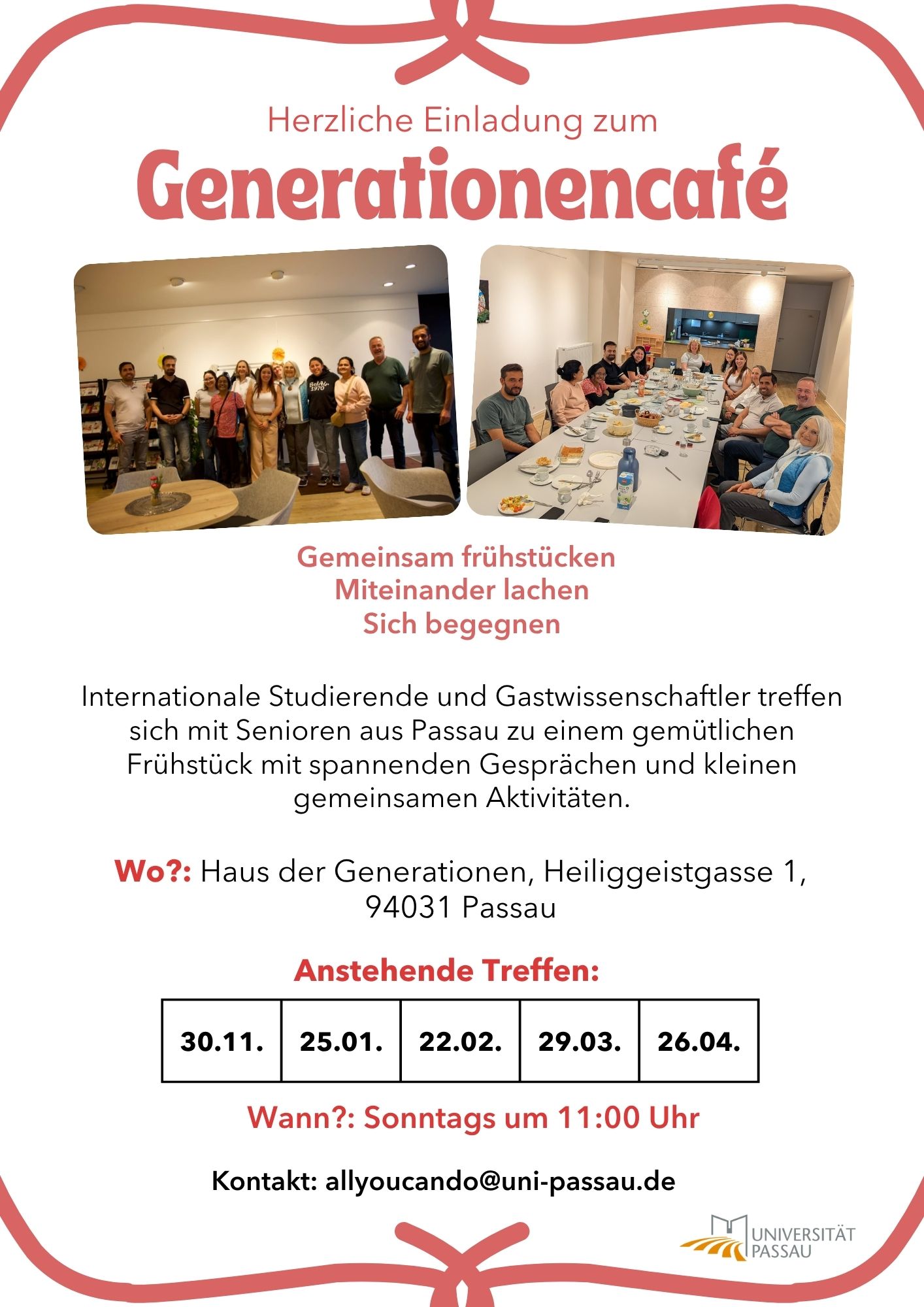 Das Generationencafé ist eine Initiative der Universität Passau (International Support Services & Welcome Center). Kontakt: allyoucando@uni-passau.de oder Instagram: generationencafe.passau