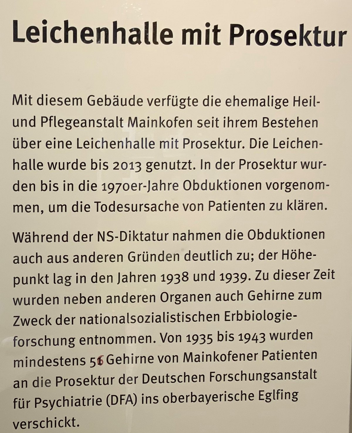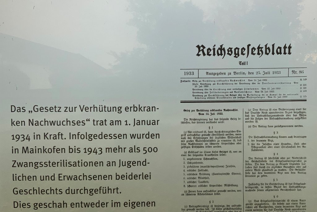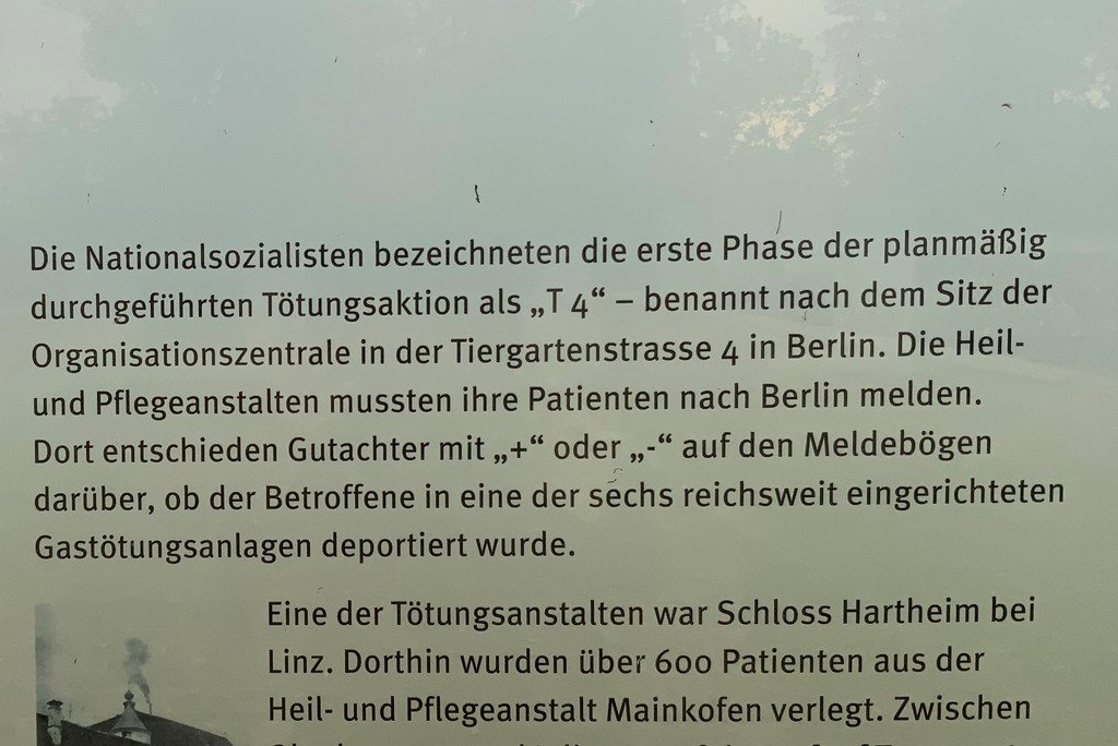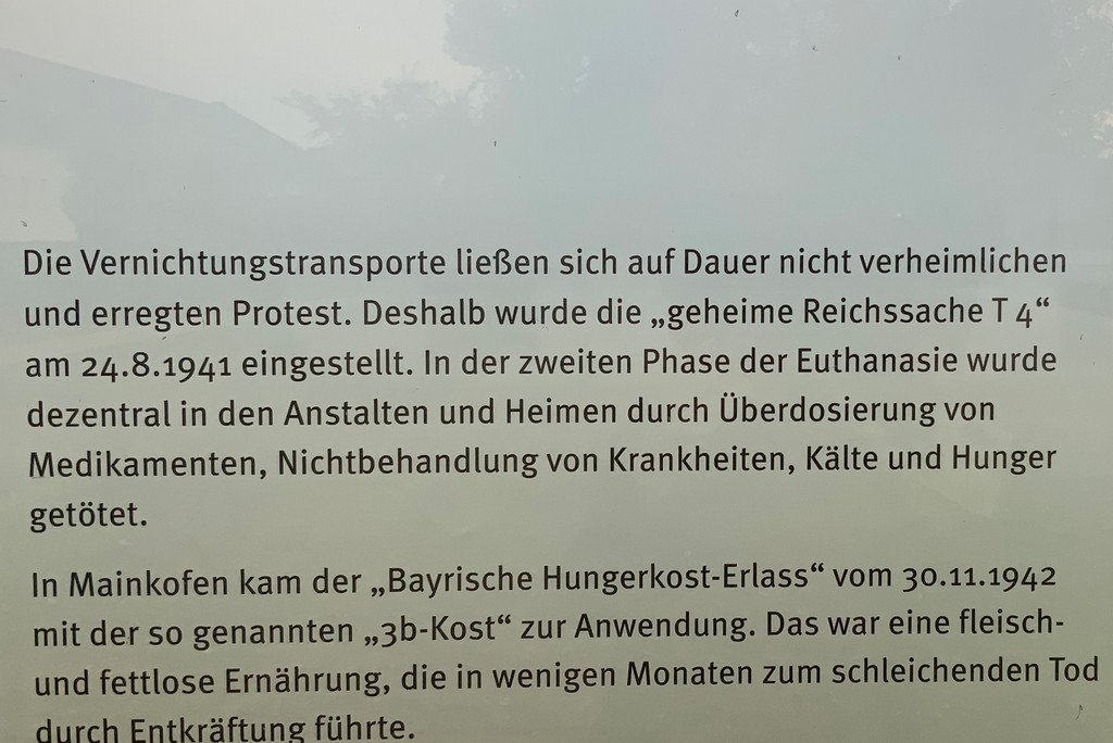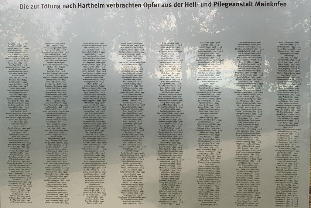 V letech 1934 až 1943 se národní socialisté dopustili velké nespravedlnosti na lidech s postižením. Bylo provedeno více než 500 povinných sterilizací. Pokud dnes víme, bylo mezi říjnem 1940 a červencem 1941 deportováno do vražedného centra Hartheim poblíž Lince 604 lidí. A 762 mužů, žen a mladých lidí zemřelo v Mainkofenu na úmyslnou podvýživu, takzvanou „hladovou dietu“.