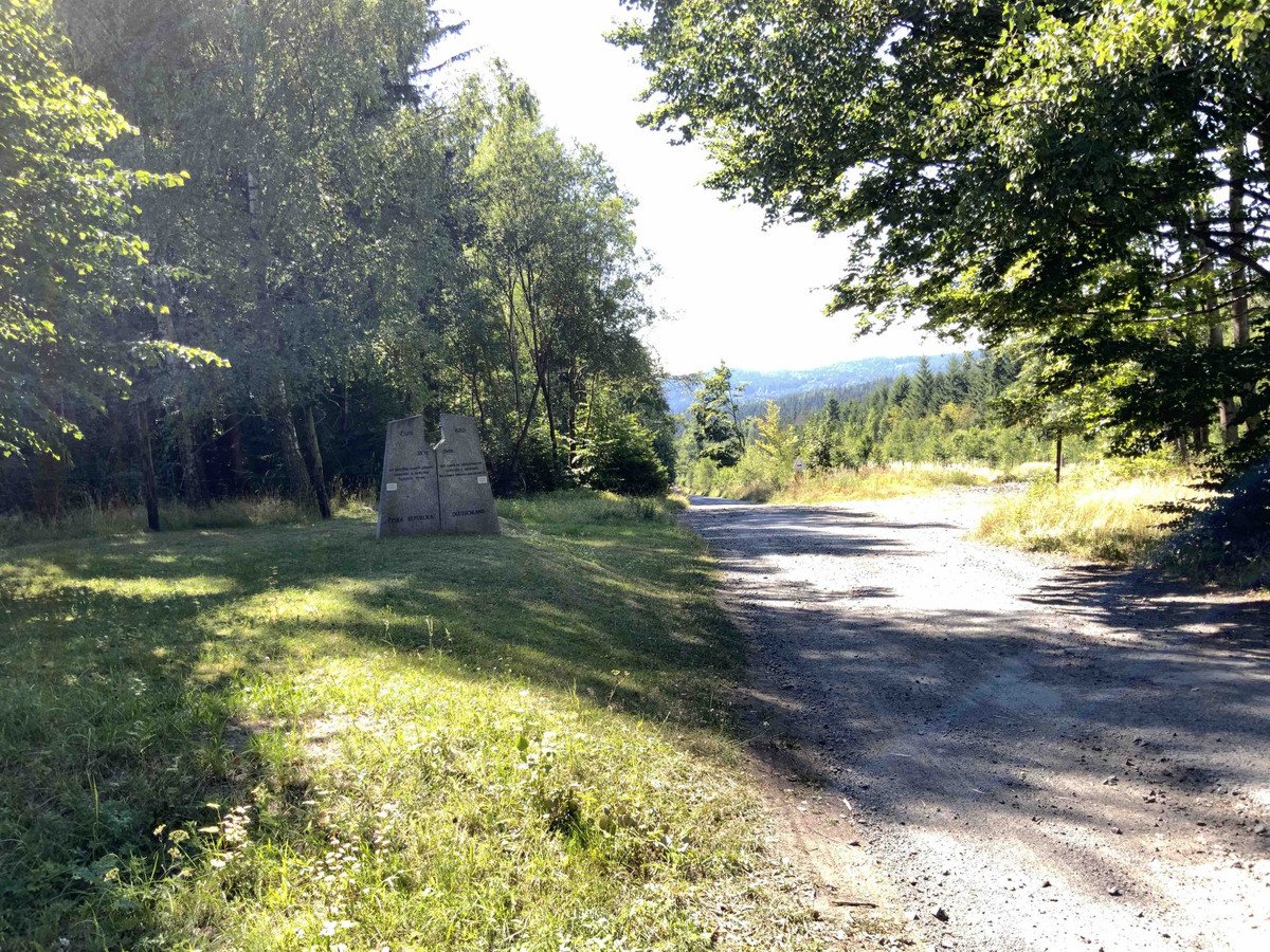 HERGESTELLT UND GESPENDET / VOM STEINMETZMEISTER GUSTL REICHENBERGER / NACH DER IDEE DER BÜRGERMEISTER VON / ROZVADOV UND WAIDHAUS / JINDŘICH ČERVENÝ U. GUSTL REICHENBERGER / ENTHÜLLT VON JIŘÍ DIENSTBIER / 26. 7. 1993