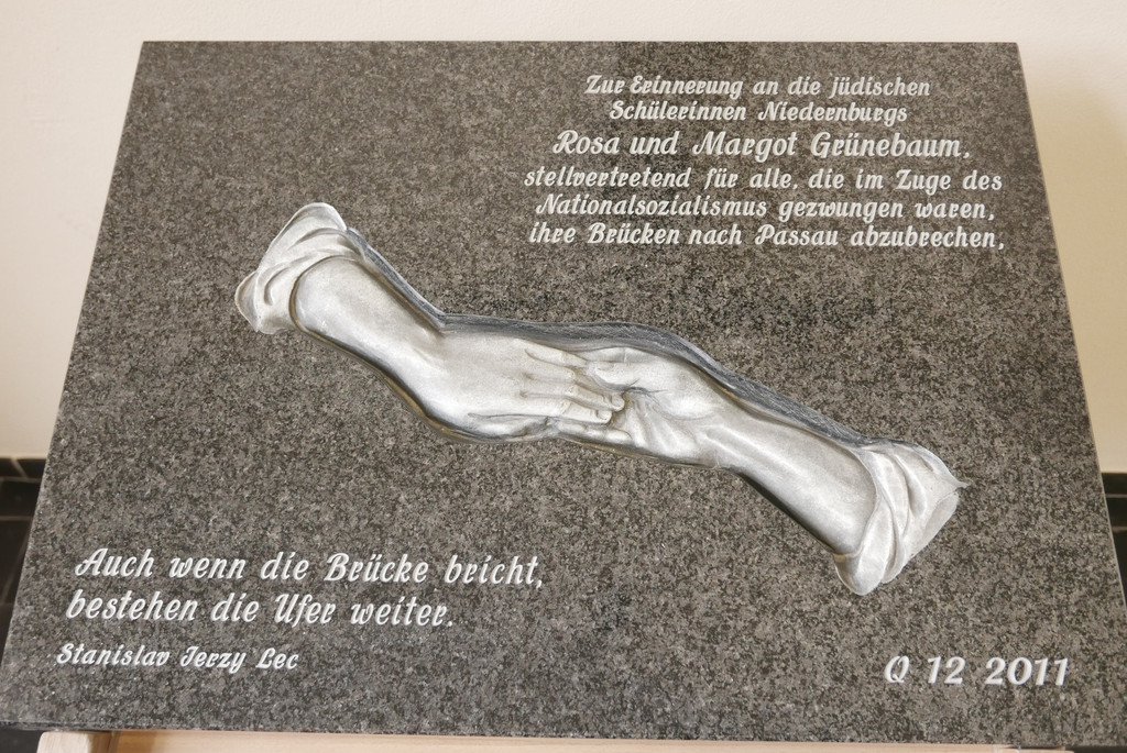Brzy bylo jasné, že památka Rosy a Margot Grünebaumových si zaslouží větší pozornost. Kameny zmizelých tehdy nebylo možné realizovat, a tak bylo rozhodnuto, že památné místo vznikne přímo na škole v Niedernburgu. Na památku někdejších židovských žákyň byla zhotovena pamětní deska, která je od roku 2011 pro všechny žačky škol sv. Gisely naléhavou připomínkou událostí, jež se odehrály v období nacionálněsocialistické diktatury. Učitelé dějepisu se osudům rodiny Grünebaumových a jejímu vztahu k Niedernburgu věnují rádi, protože se tento příběh přímo dotýká každodenního života a světa současných žákyň.