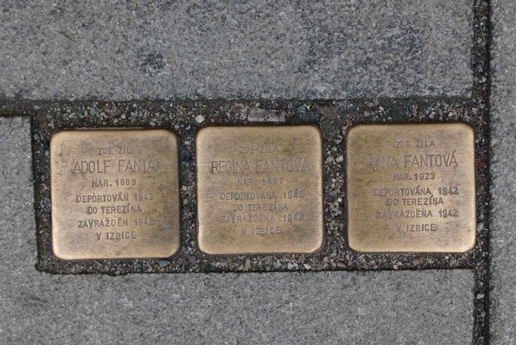 | ZDE ŽIL ADOLF FANTA NAR. 1889 DEPORTOVÁN 1942 DO TEREZÍNA ZAVRAŽDĚN 1942 V IZBICE | ZDE ŽILA REGINA FANTOVÁ NAR. 1887 DEPORTOVÁNA 1942 DO TEREZÍNA ZAVRAŽDĚNA 1942 V IZBICE | ZDE ŽILA HANA FANTOVÁ NAR. 1923 DEPORTOVÁNA 1942 DO TEREZÍNA ZAVRAŽDĚNA 1942 V IZBICE |