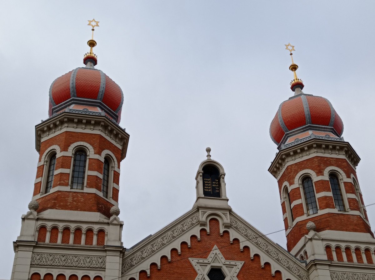 Velká synagoga je po synagoze v Budapešti 2. největší v Evropě. Je postavena v maursko-románském stylu, byla dokončena v roce 1893. Jedná se o monumentální stavbu s trojlodní dispozicí a dvěma věžemi vysokými 45 metrů. Interiér synagogy je zdoben výmalbou s rostlinnými motivy a jeho součástí jsou též varhany z roku 1890. Ve dvoře synagogy se nachází patrový rabínský dům, postavený v novorománském slohu.