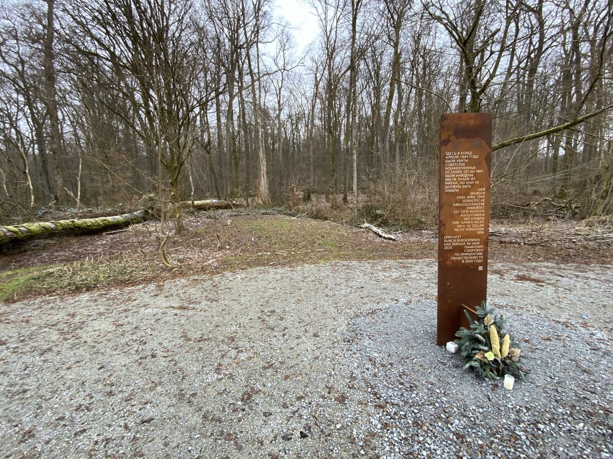 In Ingling, nach dem Parkplatz zu den Wanderwegen in den Neuburger Wald, steht seit Herbst 2020 das Denkmal für hier im April 1945 ermordete russische Kriegsgefangene.