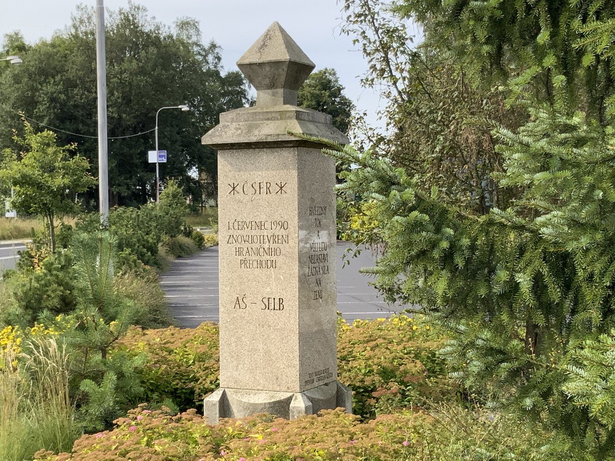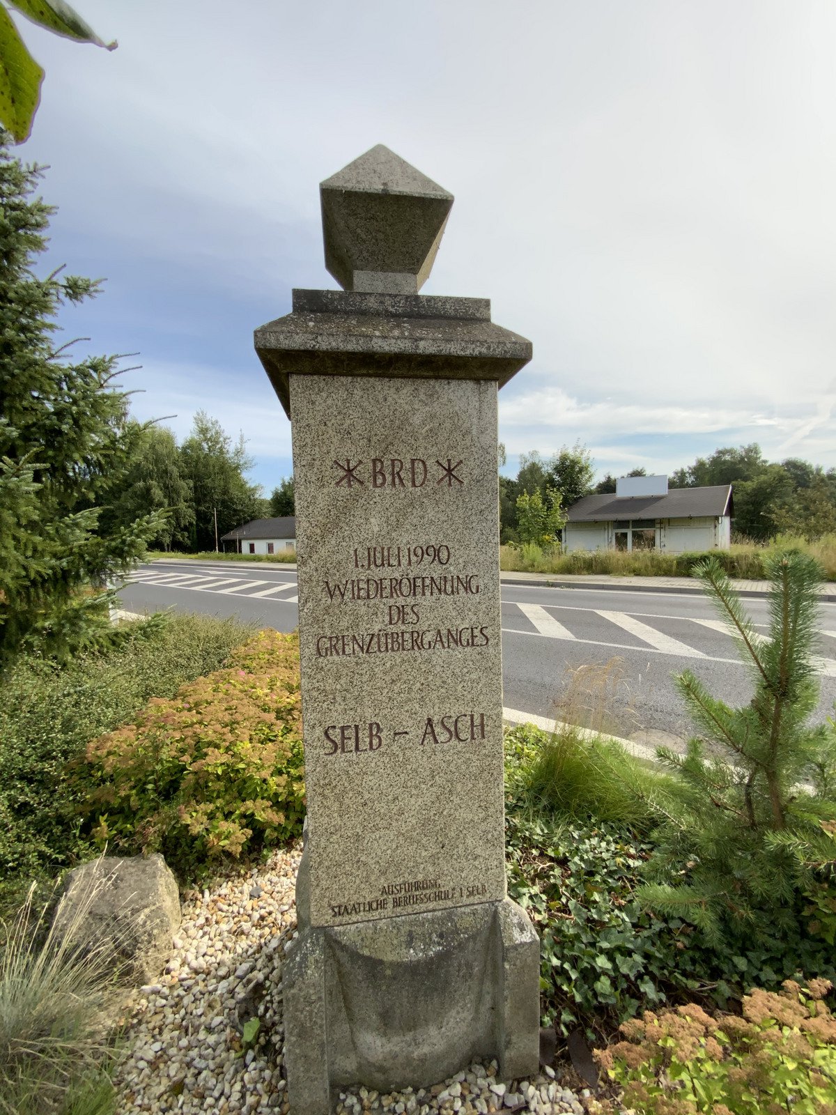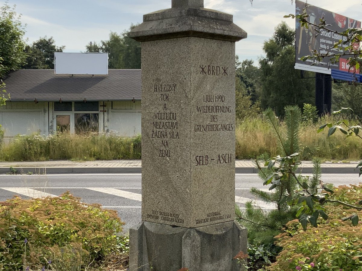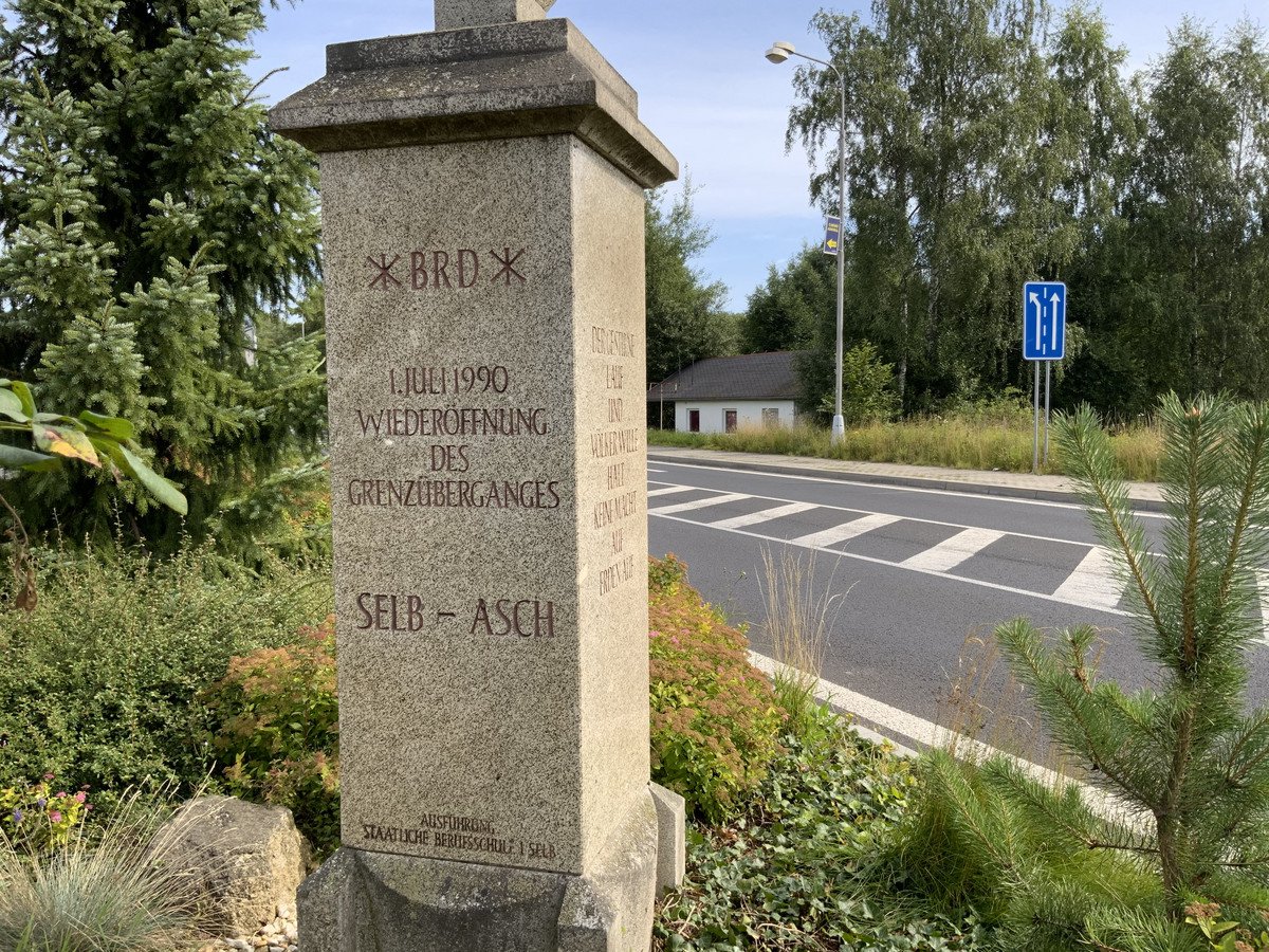 Direkt am Grenzübergang Selb-Aš steht eine Granitsäule zur Erinnerung an die Grenzöffnung im Jahr 1990.