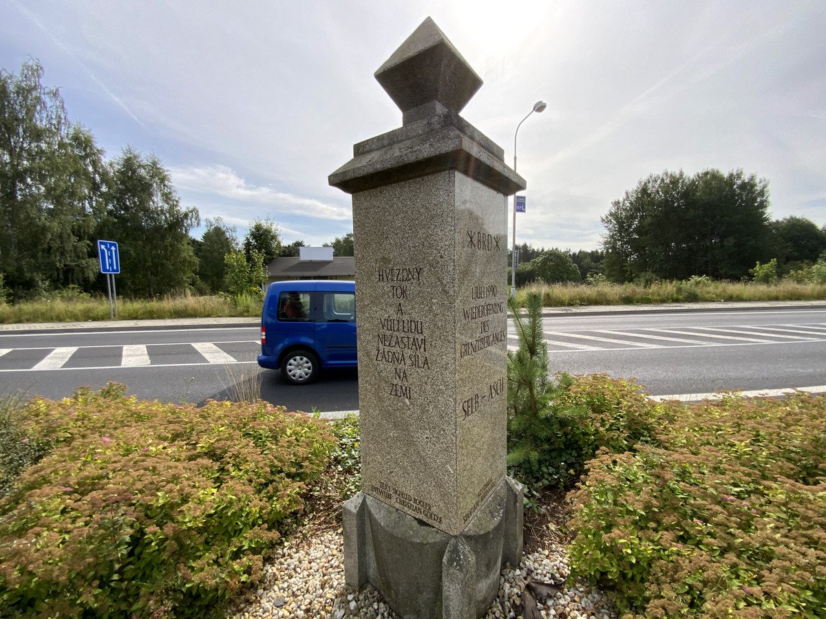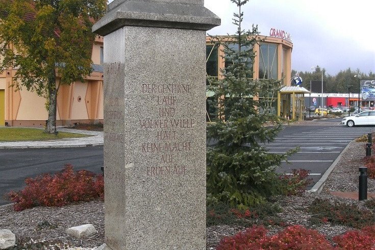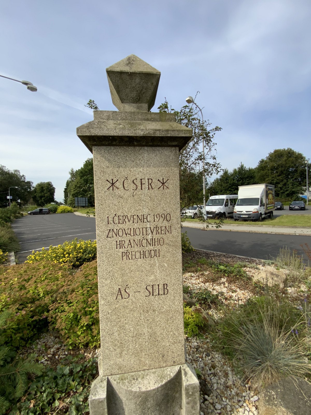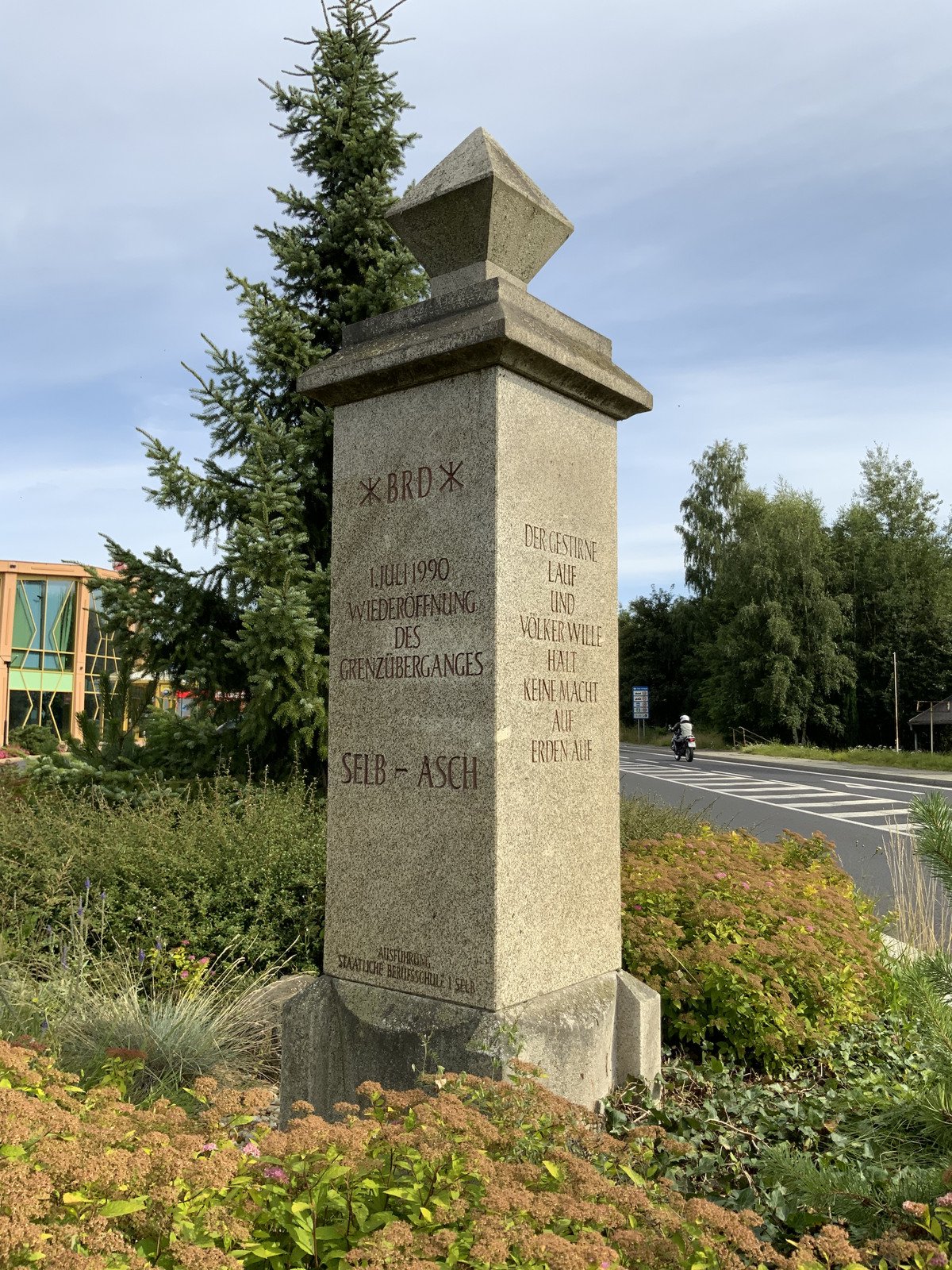 Direkt am Grenzübergang Selb-Aš steht eine Granitsäule zur Erinnerung an die Grenzöffnung im Jahr 1990.