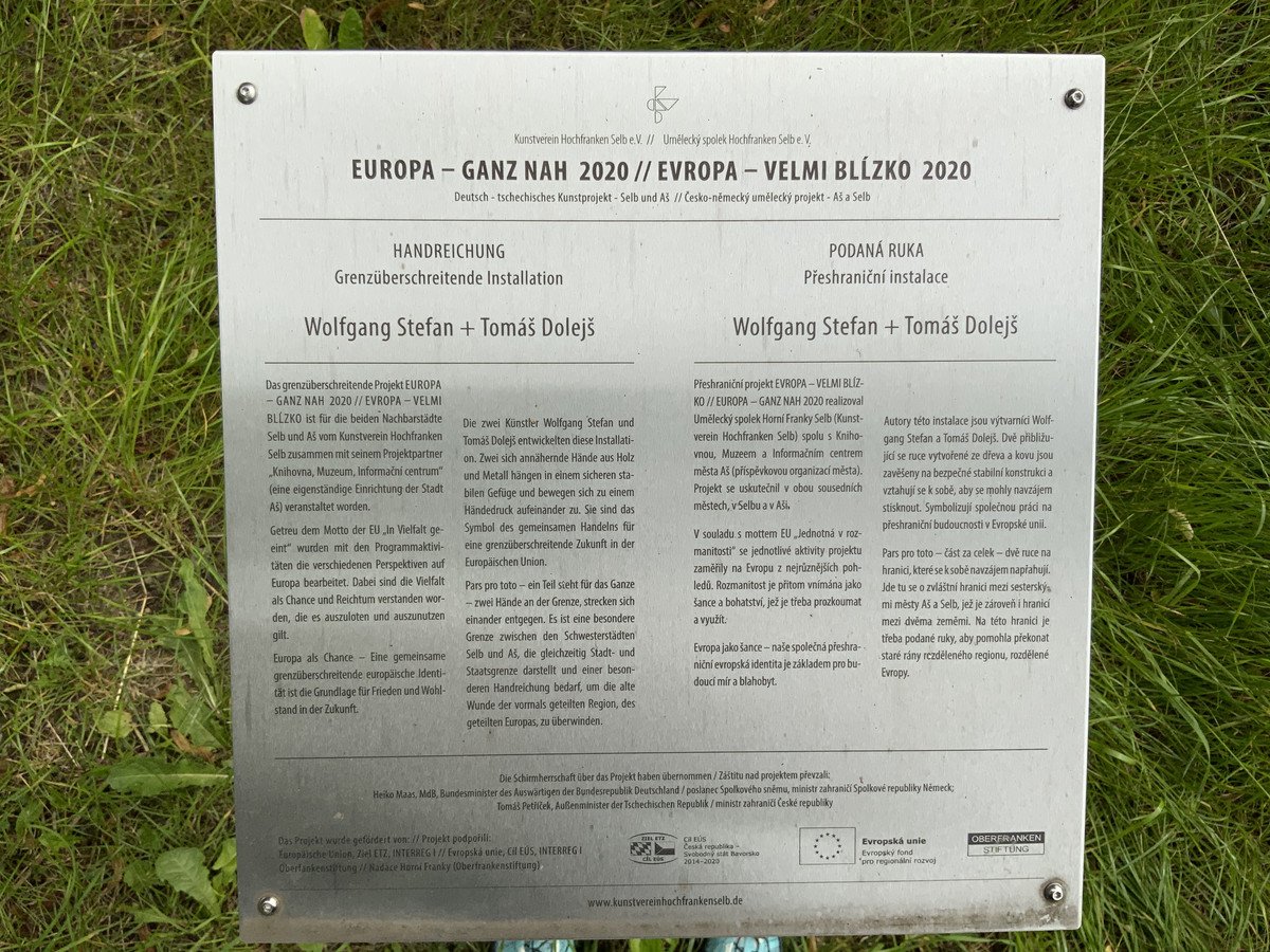 Der Kunstverein Hochfranken Selb e.V. hat im Jahr 2020 das deutsch-tschechische Kunstprojekt "Europa ganz nah / velmi blízko" initiiert. Daraus sind in Aš und Selb Fotosafaris, ein Gesprächsforum, Kinder-Kunst-Workshops und verschiedene Skulpturen entstanden, unter anderem die Installation "Handreichung".