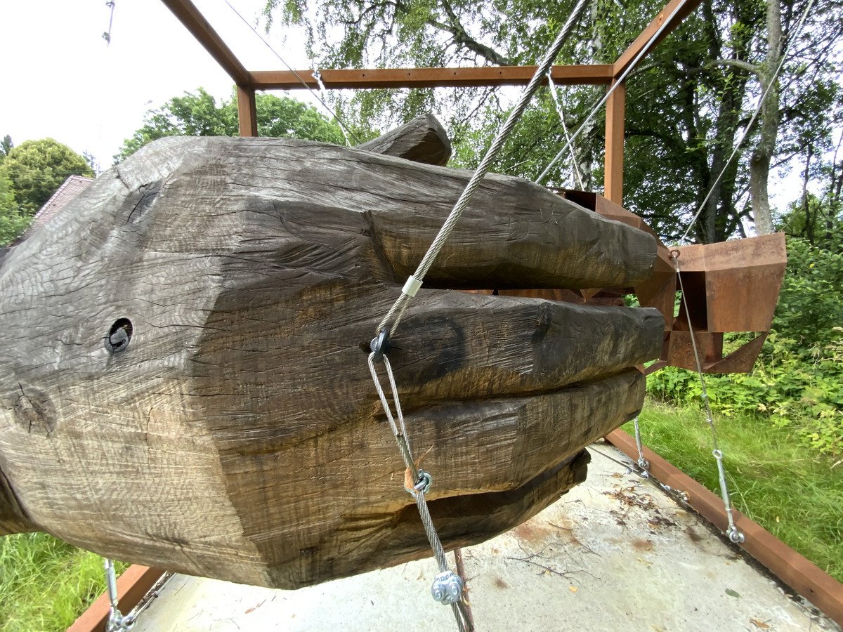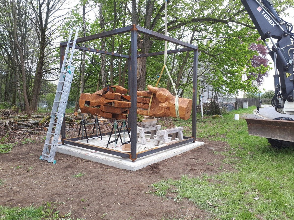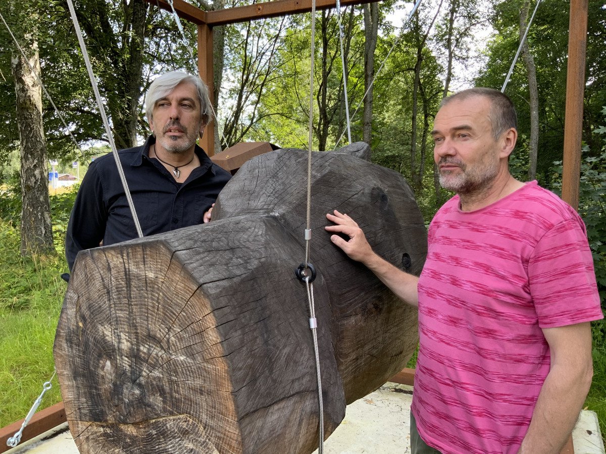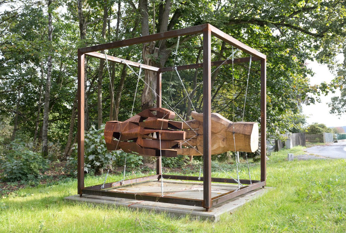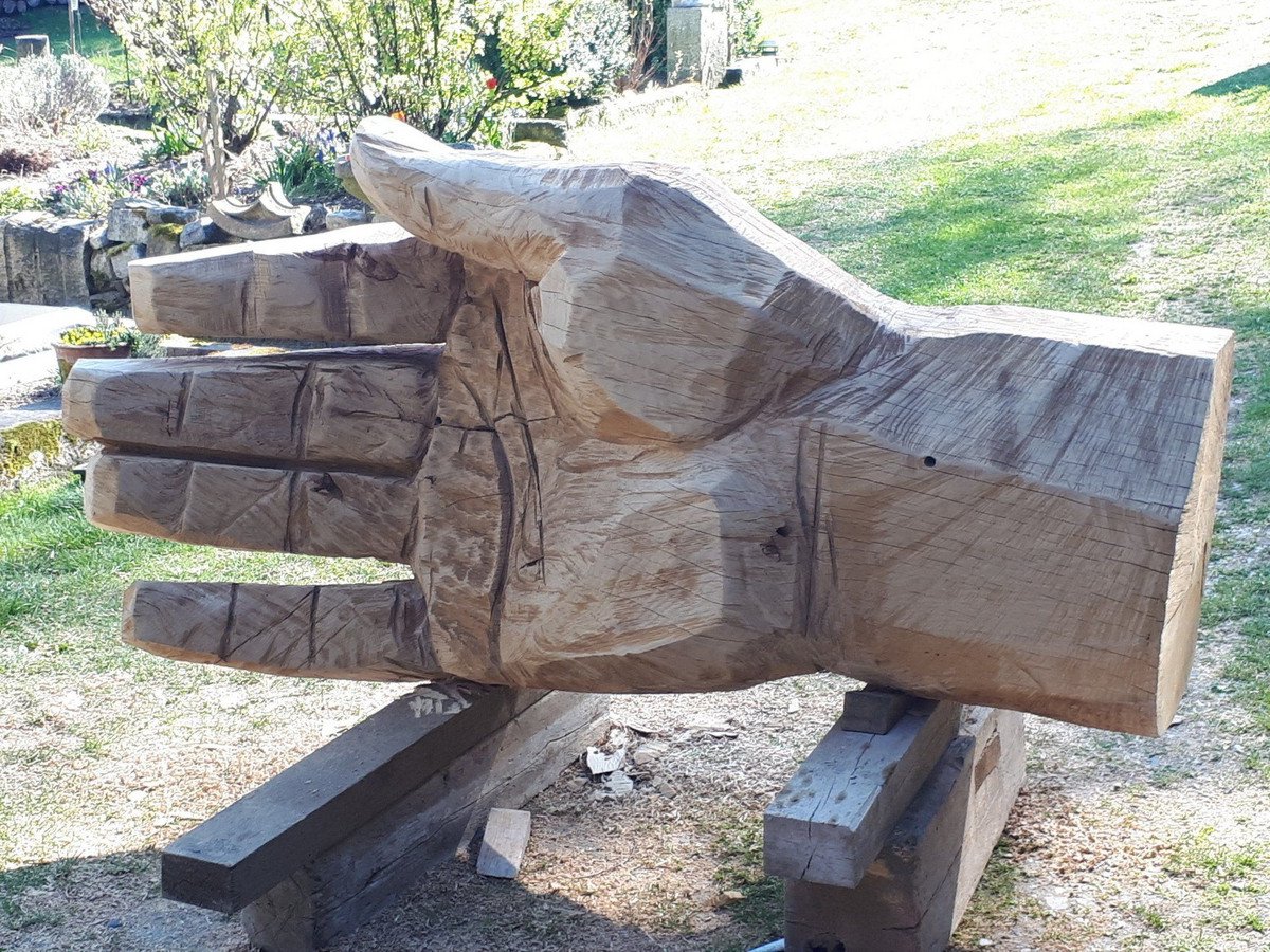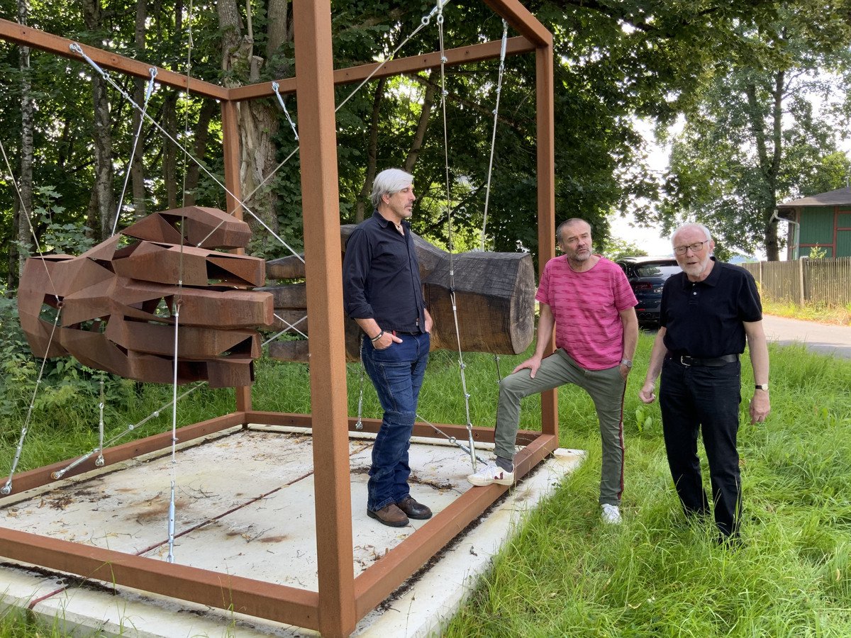 Die beiden Bildhauer Tomáš Dolejš aus Karlovy Vary und Wolfgang Stefan aus Selb oder Vohenstrauß haben gemeinsam das Werk aus zwei Teilen geschaffen. Die Vorgabe des Projektinitiators Jochen Goller war, dass die beiden Hände in einem 3x3x3m großen Kubus Platz finden müssen.