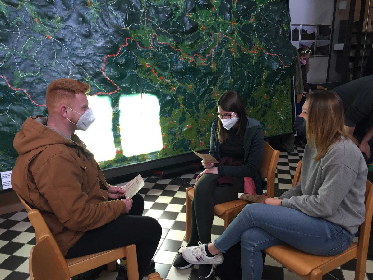 Auf der deutschen Seite der Grenze war das der Grenzbahnhof Bayerisch Eisenstein, in dem ein preisgekröntes Museum die Zeitgeschichte des Bahnhofs vergegenwärtigt. In der gemeinsamen Führung und einer didaktischen Übung im Anschluss wurde multiperspektivisch auf das Grenzgebiet geblickt, Gemeinsames und Trennendes diskutiert und ein Blick in die Zukunft der beiden EU-Länder geworfen.
