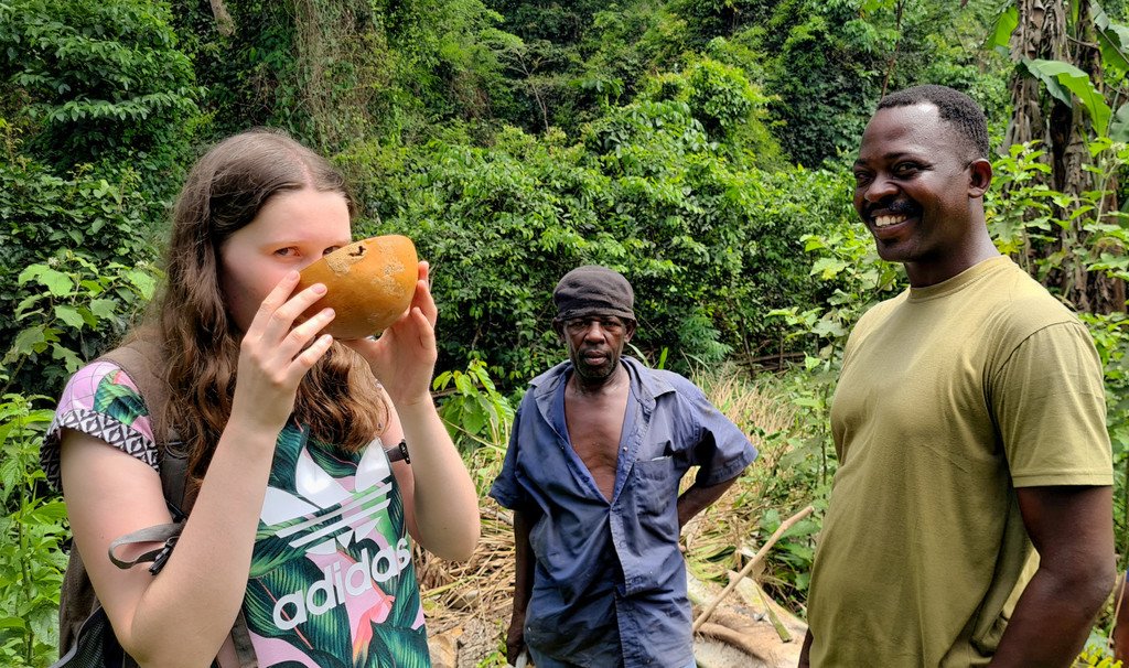 Palm wine is a alcoholic drink speciality throughout the tropics, and also widespread in Ghana. It is made from the fermented sap of palm trees and has a long history in Ghanaian culture. The finished palm wine has a characteristic sweet and slightly sour taste. Used during festivals and ceremonies, but also in everyday life, palm wine is a traditional side income for farmers and palm tree owners.